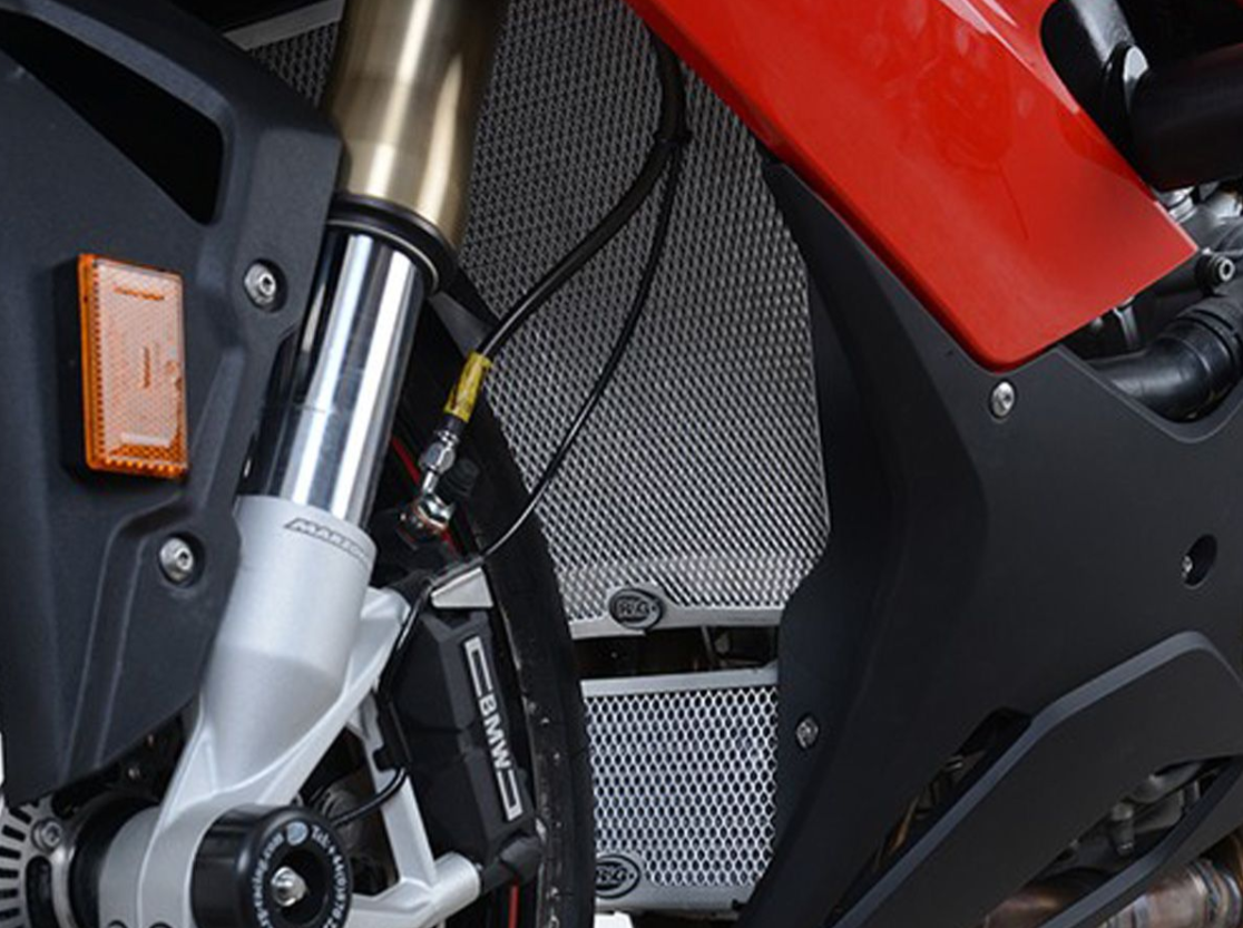 La protección del radiador Retina R&G está disponible en un acabado negro.